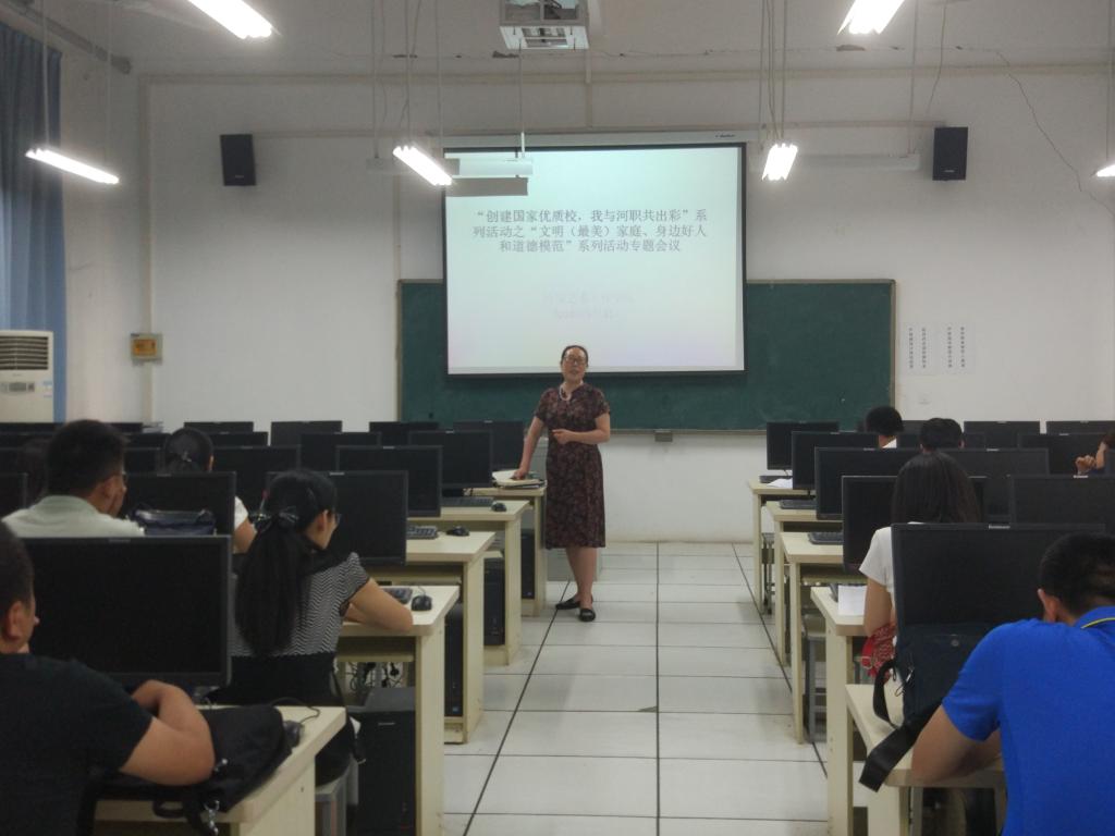 5月31日下午,环境艺术工程学院召开专题会议,部署“创建国家优质校,我与河职共出彩”活动之“最美家庭、身边好人和道德模范”系列活动工作安排。